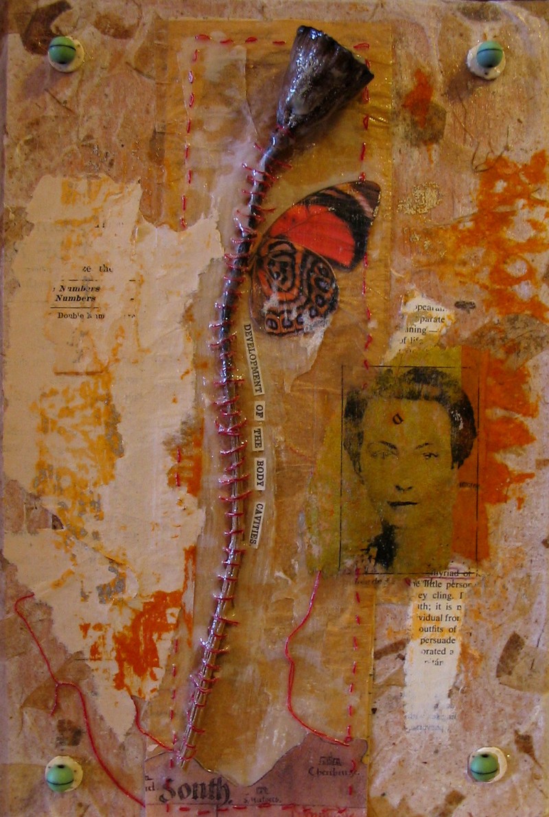 Displayed are three recent pieces by Cristina Clarimon. Clarimon uses a variety of techniques and materials in her work. The images from her work appear to be captured at a peaceful moment. They give the impression of being suspended in time, resting but ready to take flight. They have a silent and even pulse that allows the mind to wander, to imagine.