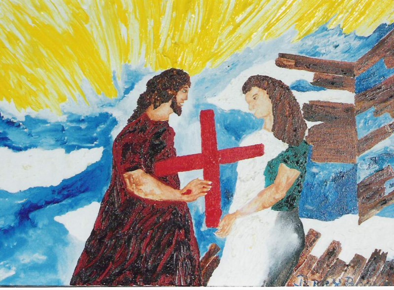 This painting represents a Christian going to be with God the Father, God the Son and God the Holy Spirit