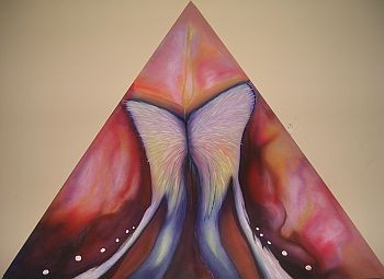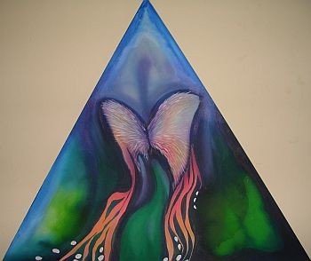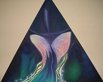 The Jera rune is change, development and reward. The reward comes from not fighting the changes, but accepting it. In the Jera paintings the figures are morphing into bird-like shapes. Some of the paintings are representing humans as energy forms.